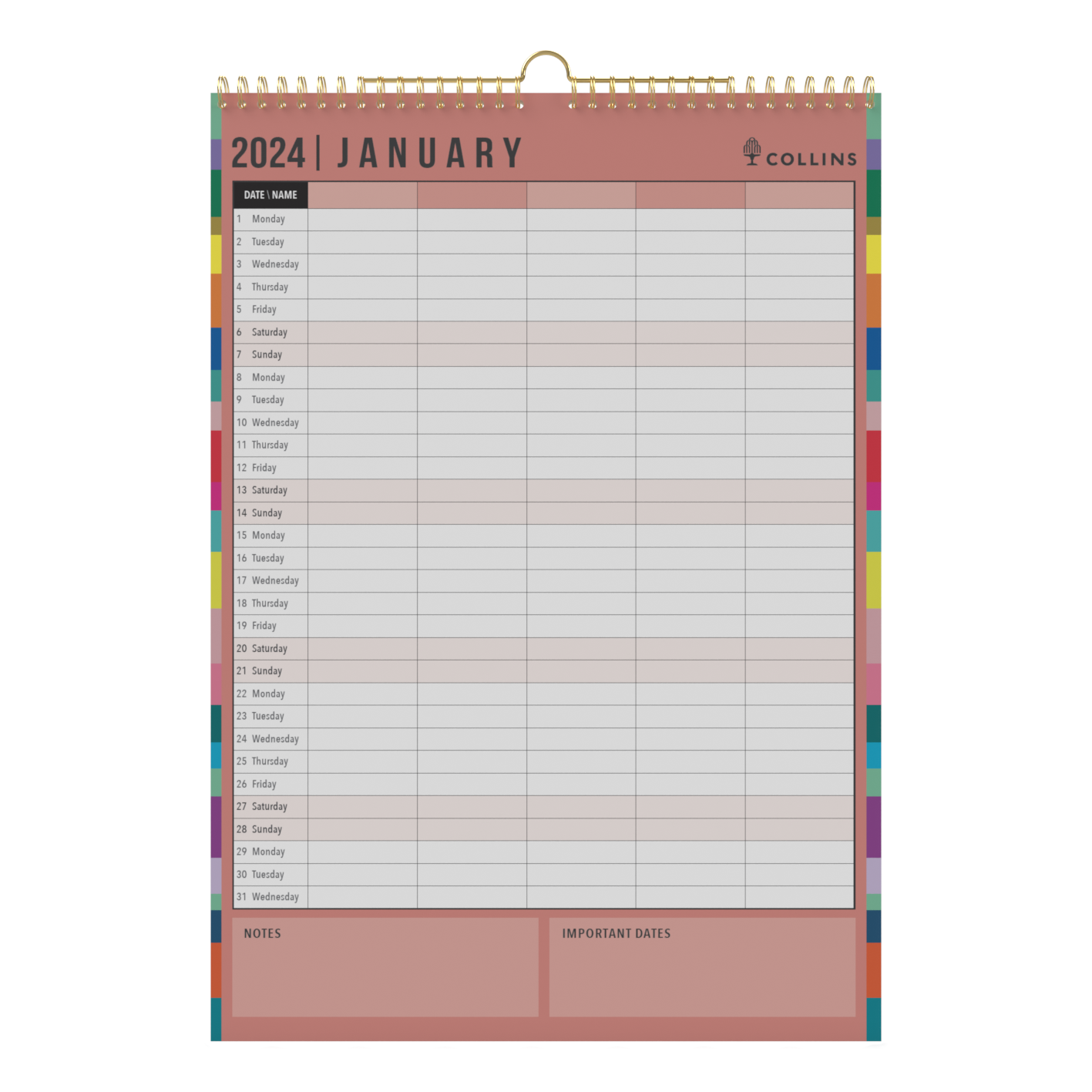 Collins Edge Rainbow 2024 Family Wall Calendar (EDFC135 24